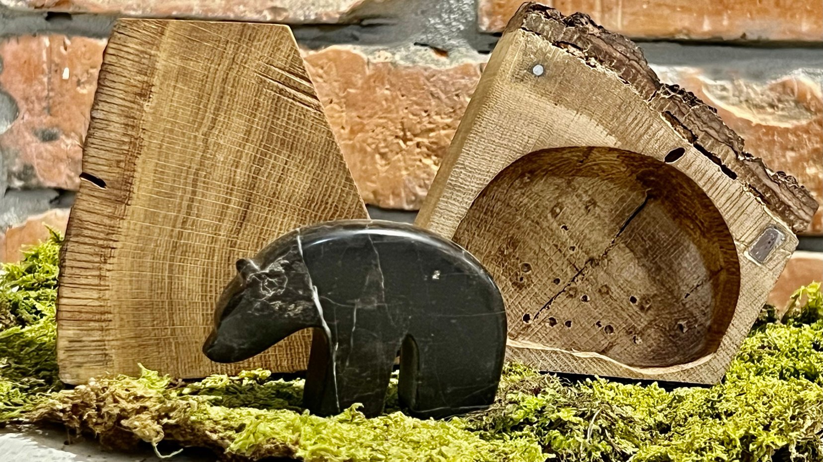 Rjavi medved, ta naš veličasten največji predstavnik zveri, je tesno povezan z identiteto destinacije Kočevsko. Kamen iz katerega je izdelan predstavlja destinacijo skozi svoj izvor, pa tudi simbolno, saj gre za navaden kamen, ki ga v gozdu najdemo v sivi barvi, z obdelavo pa zasije v temnejših rjavo sivih odtenkih in se v barvi približa barvi medveda. Kamen predstavlja trdnost in tradicijo destinacije, kjer življenje zaradi naravnih danosti od nekdaj ni lahko, vendar pa so prebivalci s svojo iznajdljivostjo in delavnostjo uspeli razviti in ohraniti bogato kulturno identiteto. Brlog izdelujemo iz različnih vrst lesa, ki jih najdemo v našem gozdu. Hrast in bukev poleg bivališča medveda, ki ga nudita s svojim gozdom ponujata tudi pomemben vir hrane predvsem v jesenskih mesecih.